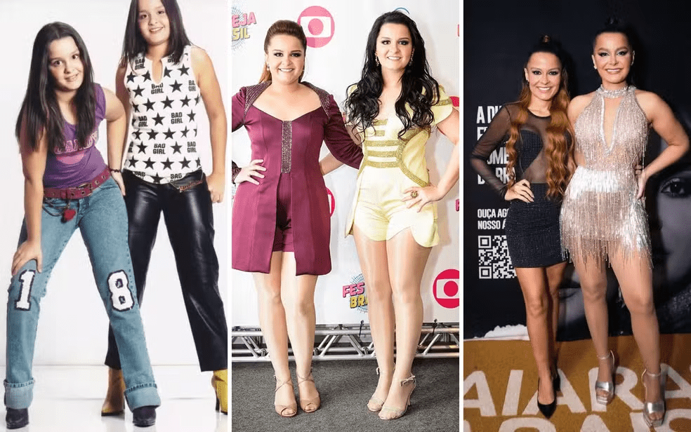 A dupla Maiara e Maraísa é do time que só melhora com o tempo. Na primeira foto ainda eram crianças, mas já sonhavam com a música sertaneja. No começo da carreira, em 2016, as gêmeas já eram diferenciadas pelas cores dos cabelos, mas mantinham looks sóbrios. Agora, em 2024, ambas estão mais magras e com visuais mais ousados.