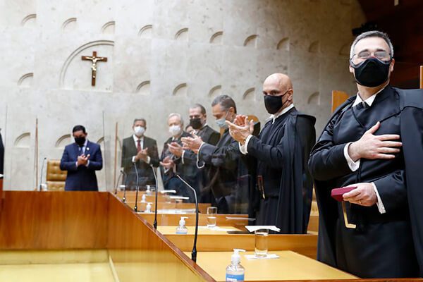 A primeira declaração pública de André Mendonça como ministro do Supremo Tribunal Federal (STF) foi de descolamento do presidente Jair Bolsonaro, o responsável por sua indicação à Corte. Na contramão de sua conduta no Ministério da Justiça, onde fez uso recorrente da extinta Lei de Segurança Nacional contra opositores do governo, o mais novo magistrado prometeu trabalhar para consolidar a democracia e defender de forma “irrestrita a liberdade de imprensa” e os jornalistas. Mendonça foi empossado ontem, durante cerimônia realizada em Brasília.