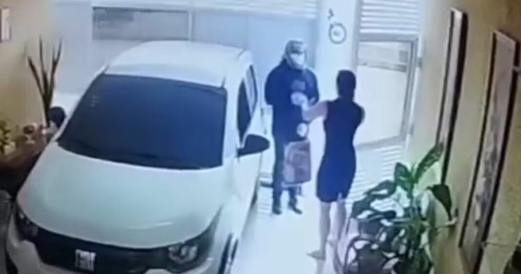 Imagens de câmera de segurança foram colhidas pelos investigadores e, por meio delas, a polícia identificou que o suspeito de cometer o crime chegou ao imóvel por volta das 16h30, encapuzado, com máscara e luvas. Eles conversaram e depois entraram.
