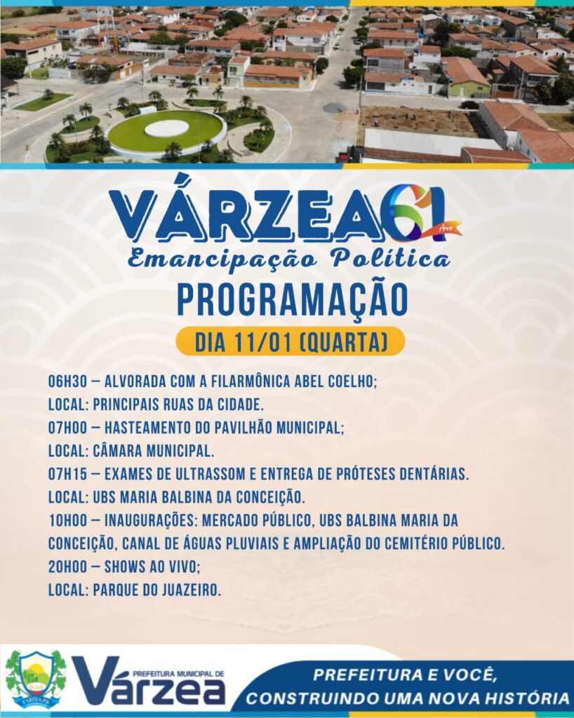 O município de Várzea, localizado no Seridó Ocidental Paraibano, comemora nesta quarta-feira (11), 61 anos de emancipação política.