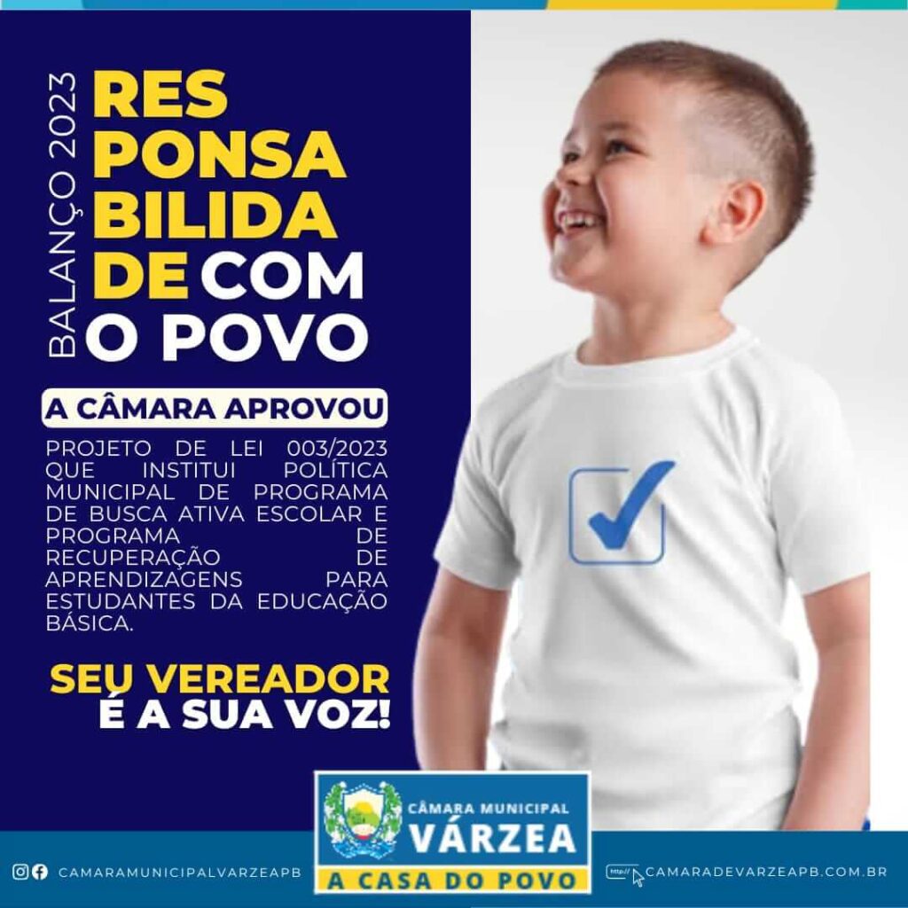 Além disso, também foi aprovado o Projeto de Lei 003/2023, que institui uma política municipal de programa de busca ativa escolar e programa de recuperação de aprendizagens para estudantes da educação básica. Essa medida visa identificar e atender aos estudantes que estão fora da escola ou apresentam dificuldades no aprendizado, melhorando a qualidade da educação no município.