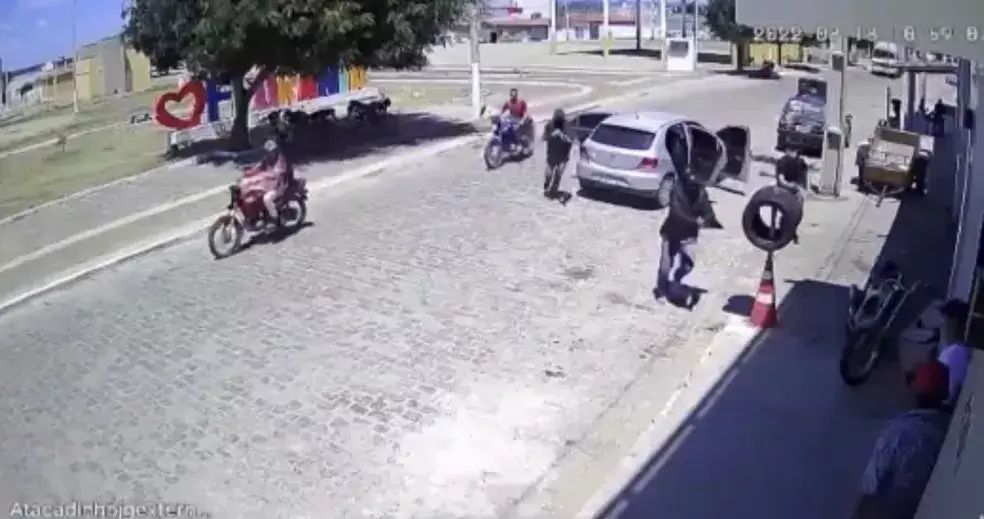 Imagens de câmeras de segurança mostraram o momento do crime ocorrido na Rua Jarino Tinoco, no bairro Paz e Amor, por volta das 10h (veja abaixo).