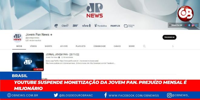 Desta forma, suspendemos a monetização do respectivo canal e dos outros que integram a rede Jovem Pan no YouTube, de acordo com nossas regras”.